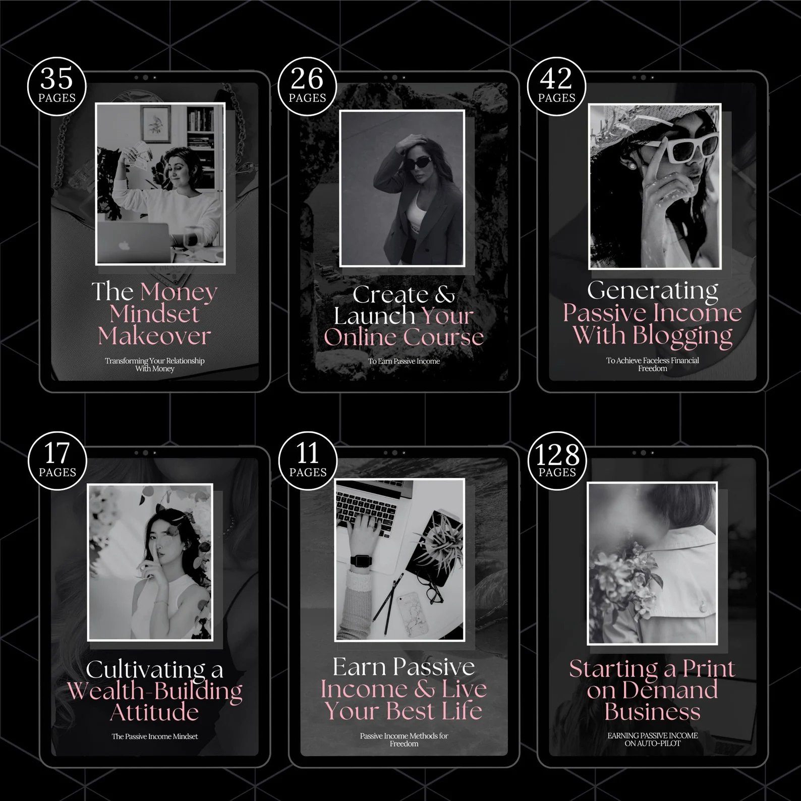 Comprehensive digital resource pack designed to help users generate passive income through reselling and customizing eBooks, ideal for digital marketers, entrepreneurs, and content creators.